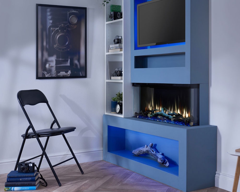 Iluminación LED opcional: cree el ambiente adecuado en su habitación iluminando el área que rodea su fuego; hay tiras de iluminación LED de longitudes opcionales disponibles que se enchufan a su fuego y se pueden colocar en su chimenea o empotradas en la pared. Las luces se controlan desde el control remoto del fuego y le ofrecen una paleta de trece colores gloriosos que se pueden configurar por separado para los efectos de llama y lecho de combustible (también se pueden configurar con los mismos colores).