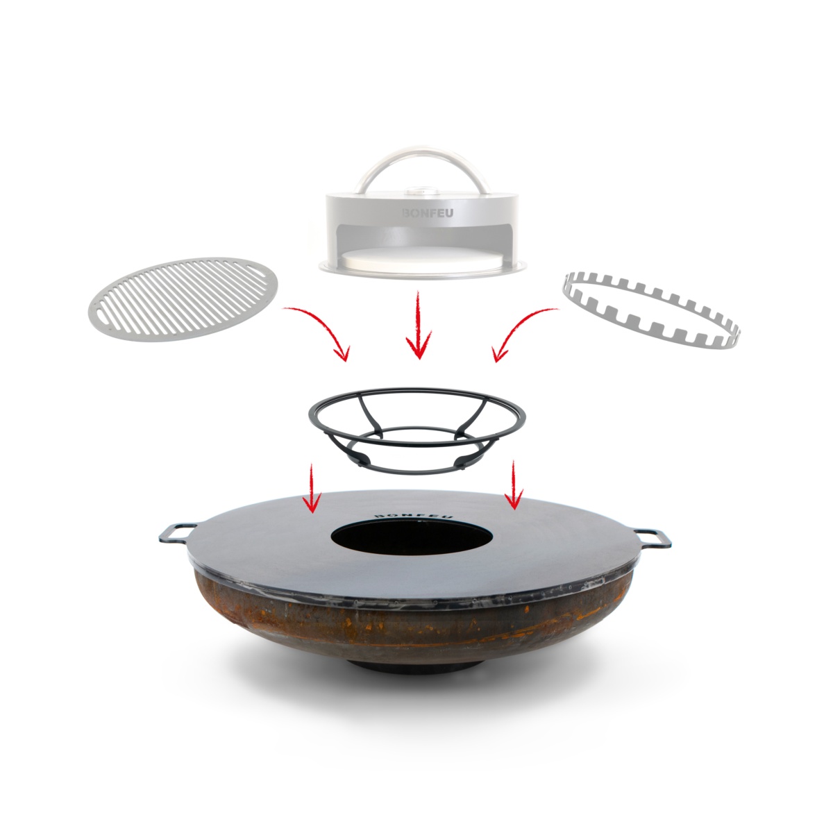 Este práctico soporte BonFeu es fácil de colocar en la cocina exterior BonBiza o en los BonBowls. Es ideal para utilizar con el horno para pizzas BonPizza, el Aro para Brochetas o el Grill para Soporte. El soporte encaja perfectamente en el centro de BonBiza y BonBowl y garantiza una buena estabilidad durante la cocción.
