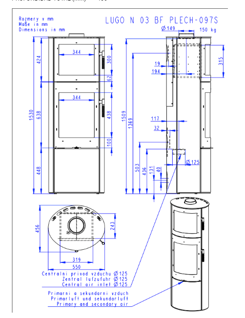 Diámetro salida de humos (mm) 150