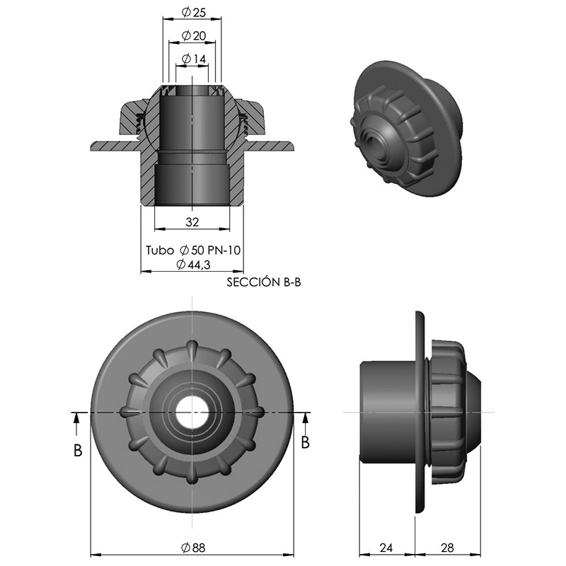 - Para encolar a interior de tubo Ø 50 mm PN 10.