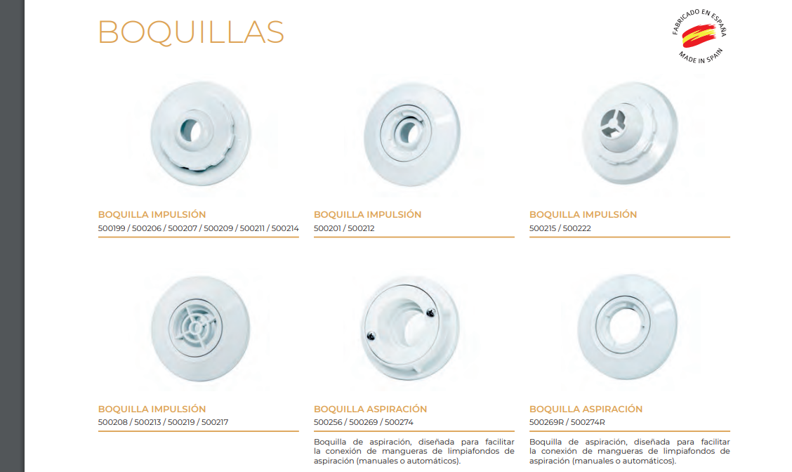 - Boquilla de impulsión Multiflow 88×24 de la marca AstralPool para piscinas de hormigón.