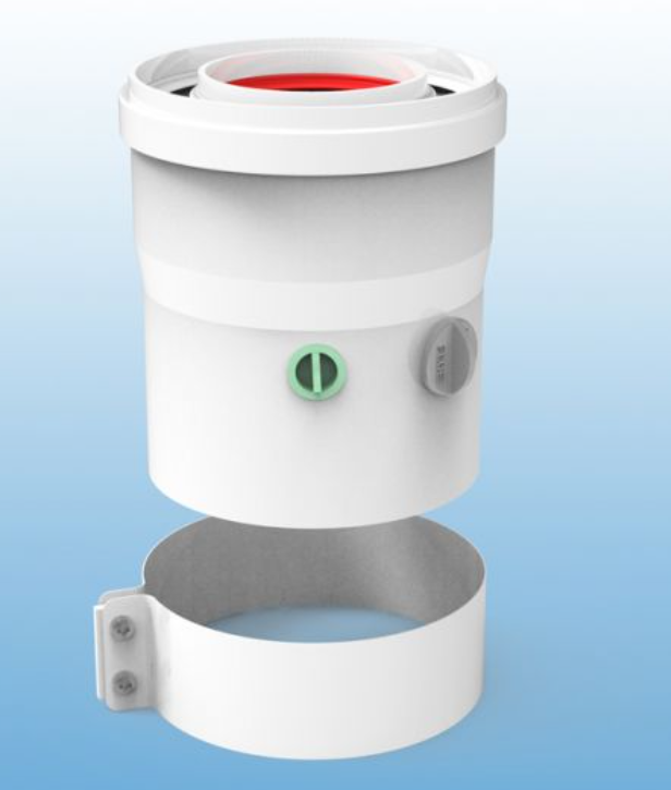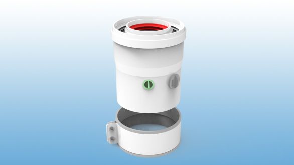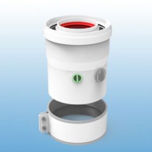 Conexión Vertical de salida de humos coaxial (Ø60/Ø100) con toma de muestras realizada en aluminio y aluminio lacado compatible con calentadores HTW.