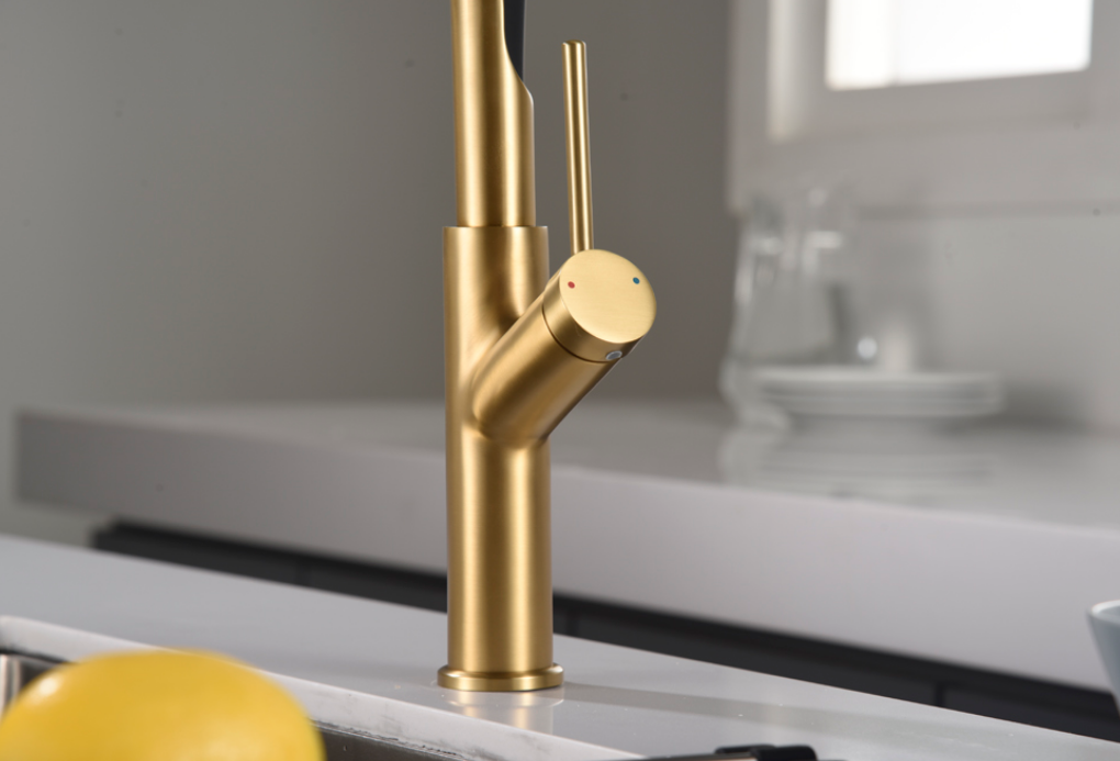 GRIFO DE COCINA MONOMANDO FLEXIBLE ORO CEPILLADO SERIE SENA