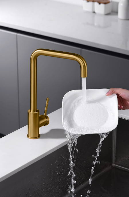 GRIFO DE COCINA MONOMANDO ORO CEPILLADO SERIE LOIRA
