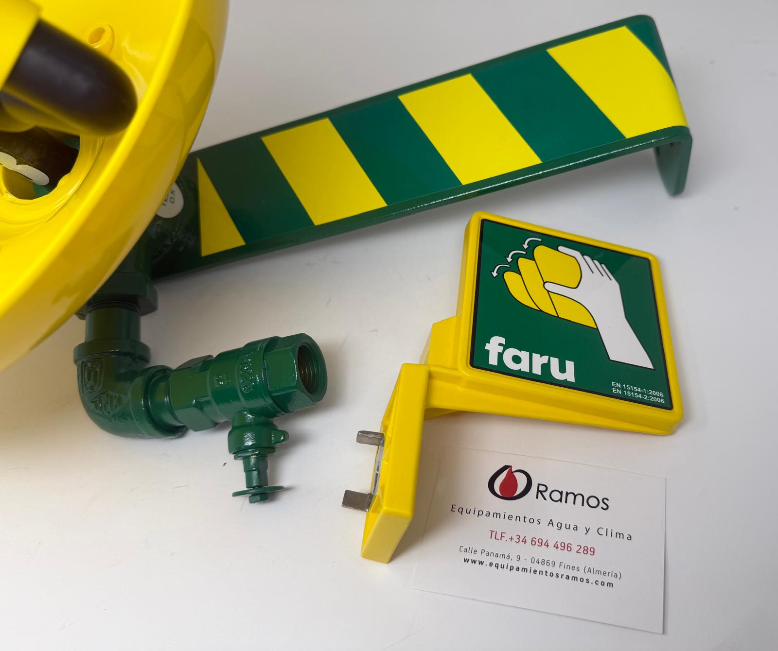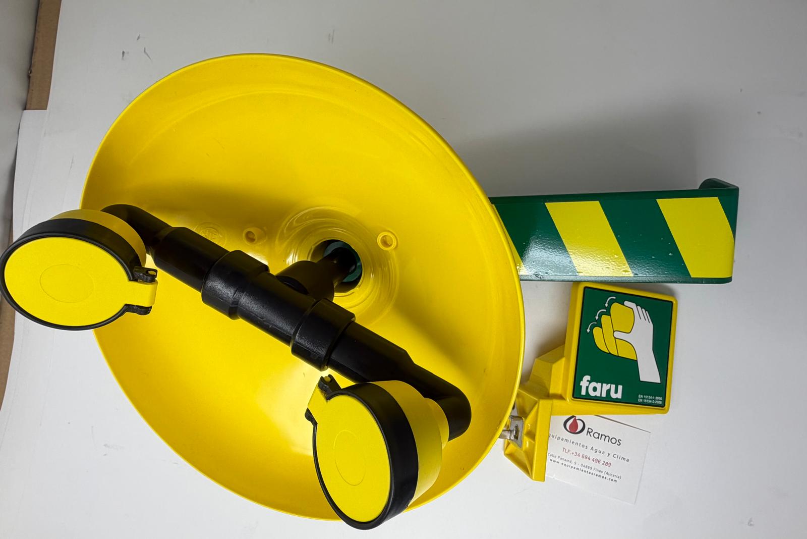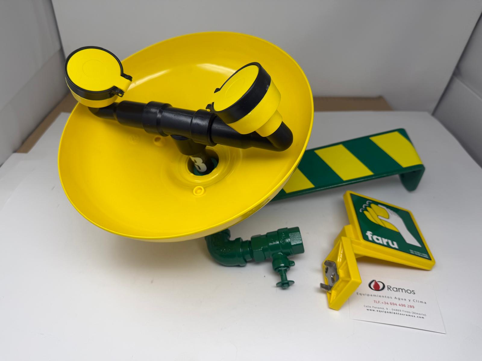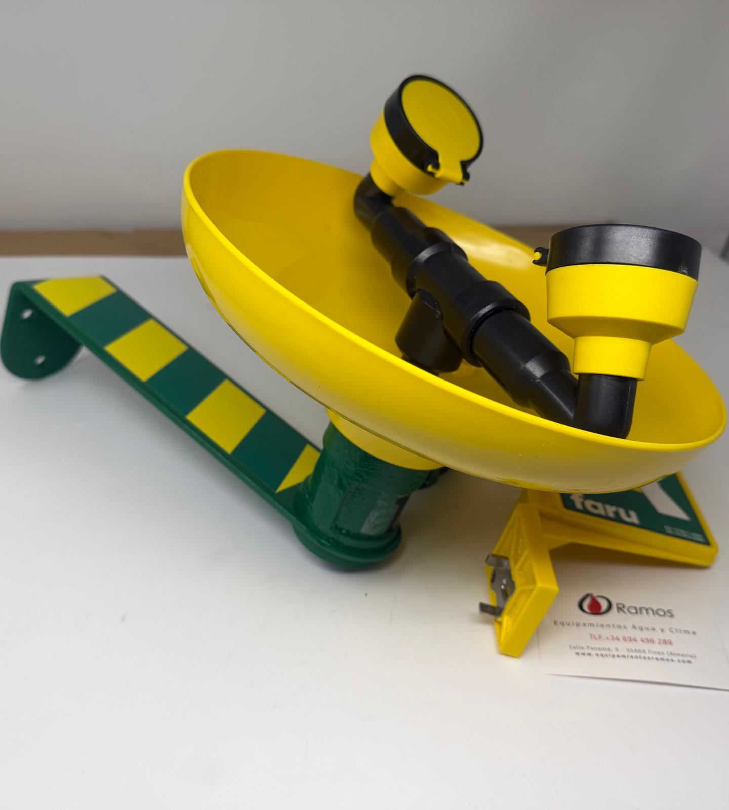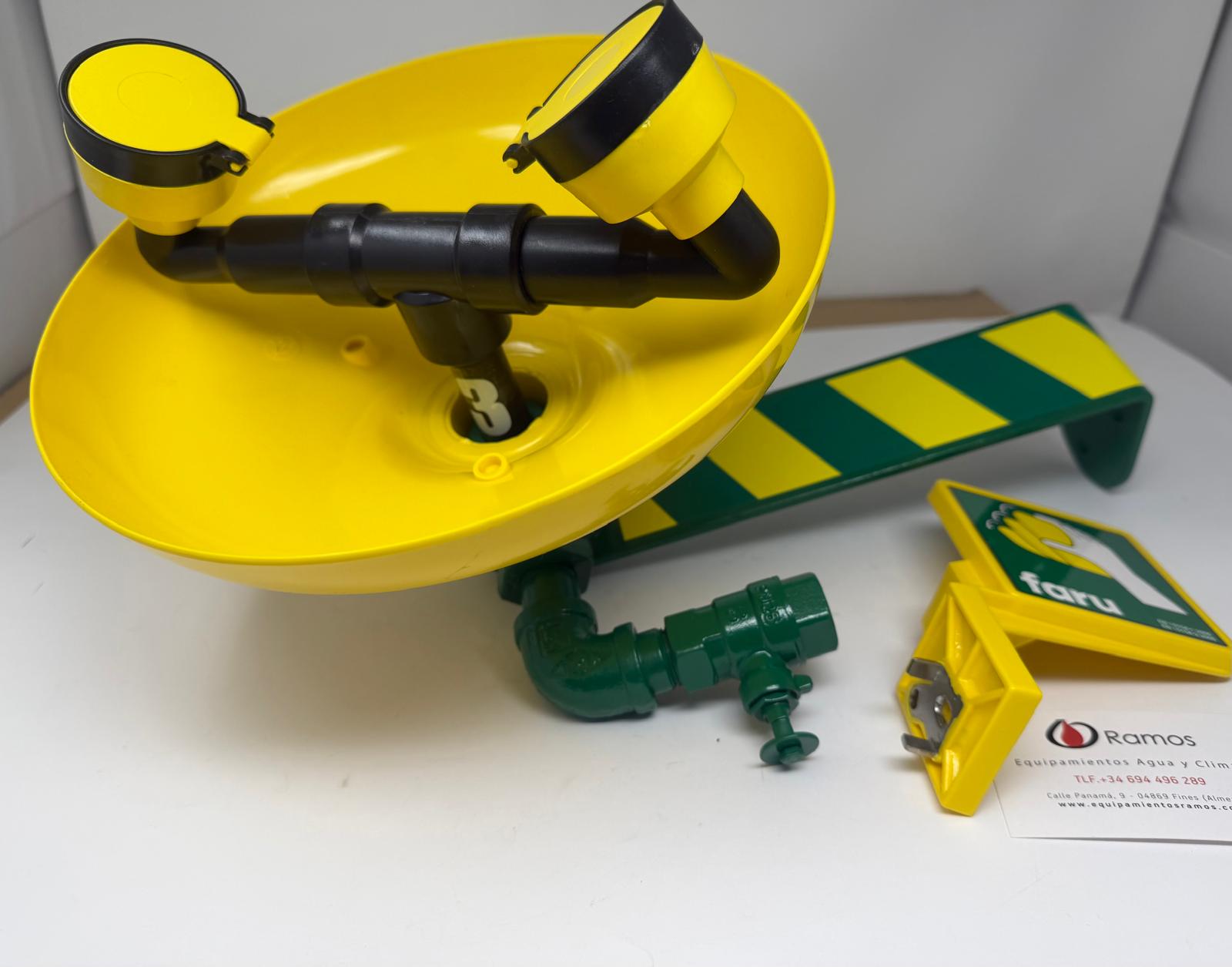 - La poza de CYCOLAC (ABS) es resistente a la corrosión y es de color amarillo de alta visibilidad para que sea fácilmente identificable. Las tapas “pop-off” de las bocas evitan que se contamine la salida de agua. La válvula es de fácil apertura y deja el flujo permanentemente abierto. El agua sale por unas almohadillas atomizadoras que proporciona un flujo de agua suave y aireado al área ocular dañada.
